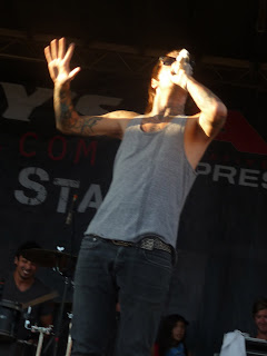 After the amazing performance of Of Mice & Men we walked around, chilled checked out other bands! We were waiting for A Day To Remember and Asking Alexandria. So i got to hear Every Avenue, Gym Class Heroes, and The Ready Set. It was awesome! So after resting we headed over to hear A Day To Remember. Wow...I had never seen so many people. We got in to the middle...which was a terrible idea. You were squished like sardines and you could barely breathe!! I honestly thought i was going to die in the crowd...The concert started and we were all pushed forward! I was jerked around and bent in half! Half way through the first song i decided i wanted out. So i pushed my way through death and made it out alive...well half alive hahaha. Yeah sadly i didn't get any pictures of my near death experience...but I'm just glad i survived!! It sounded good though. After that we watched Asking Alexandria. They were amazing!!! I didn't go in to the crowd cuz i knew if i did i would be dead for D.R.U.G.S. so i watched but i love them! and am totally getting more of their stuff!!